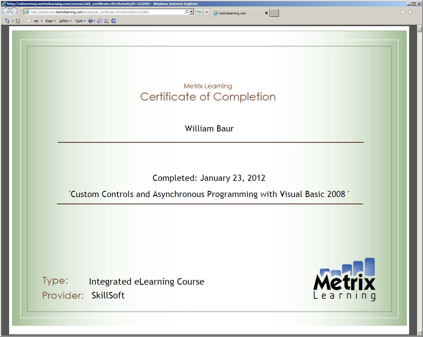 • Worked on VB6 to Visual Studio 2010 rewrite.