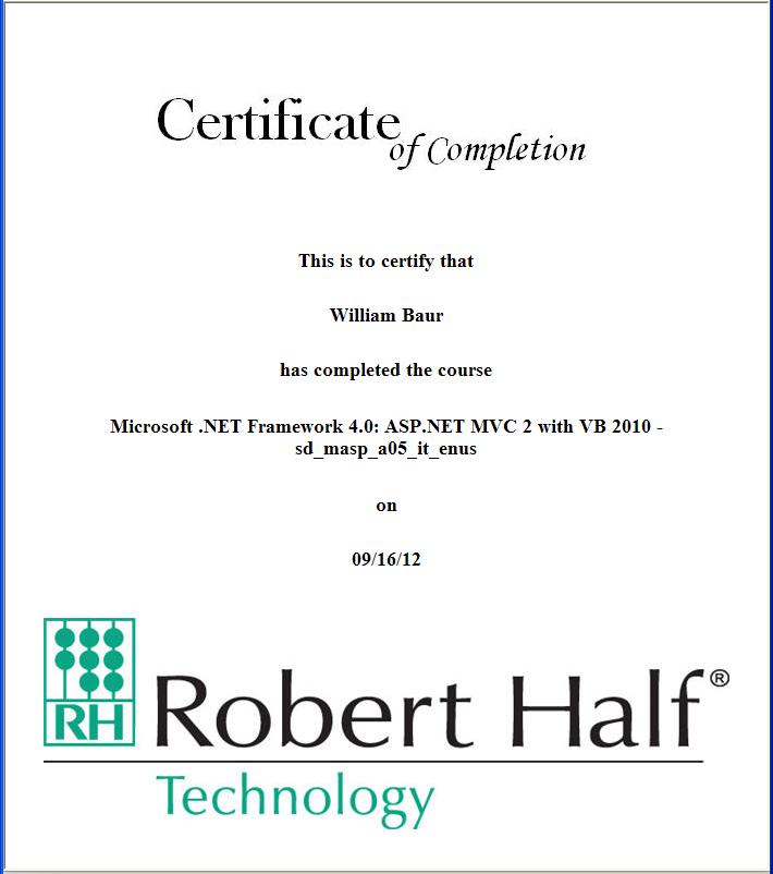 • Visual Basic, SQL, Javascript, jquery, Visual Studio, ASP.NET MVC 4, Razor• Programming in HTML5 with JavaScript and CSS3 , Bootstrap