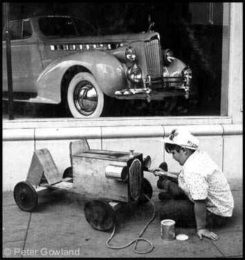 | We would spend hours building our go-carts out of scraps, and then rode them down the hill, only to find we had forgotten the brakes. After running into the bushes a few times we learned to solve the problem. |