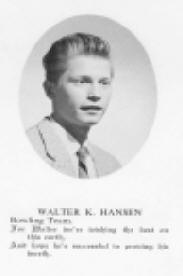 locate her for an alumni paper of Tottenville High School. That person was Ellen (Lutter) Petersen and the woman was Arlene Rahtes Harris. Arlene just happened to be coming to visit her brother at the time of Ellen's call. When she returned home to Florida, she called Ellen. During the conversation Ellen mentioned that she could not locate Walter Hansen. Arlene told her that she might be able to locate him for the paper. It just so happened that she remembered the name of Walter's mother and looked up her name and address on the Internet. Walter's mother remembered Arlene right off and they had a lovely conversation. She gave Arlene Walter's address in Maine and, on Christmas Eve 2001, Arlene wrote him a letter asking if it was OK to give Ellen his information and gave him a brief bio of her life up until then. A few weeks later Arlene received a letter back from Walter saying that he was glad to hear from her and to go ahead and give Ellen the information.