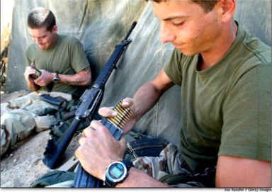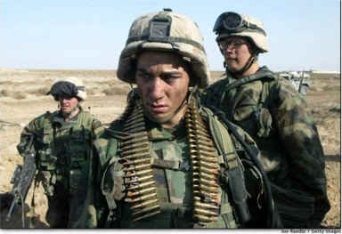 He's a recent High School graduate; he was probably an average student, pursued some form of sport activities, drives a ten year old jalopy, and has a steady girlfriend that either broke up with him when he left, or swears to be waiting when he returns from half a world away. He listens to rock and roll or hip-hop or rap or jazz or swing and a 155mm howitzer. He is 10 or 15 pounds lighter now than when he was at home because he is working or fighting from before dawn to well after dusk.
