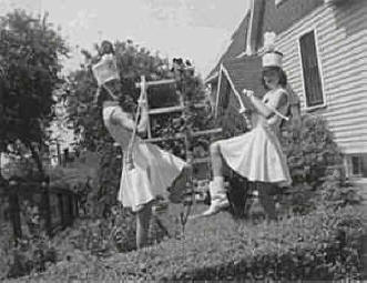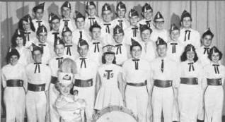 The ‘Twirlers’ were Pat Monahan, Loretta Jasina, Jane McGrath, Judy Larsen, Joyce Moccia, Jeanette Uhler, Karen Van Velson, Irene Mazurek and myself. In 1957 there were just three of us. Irene was our ‘Majorette’ and Karen and myself were the ‘Twirlers.’”